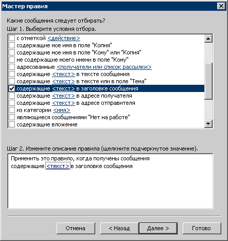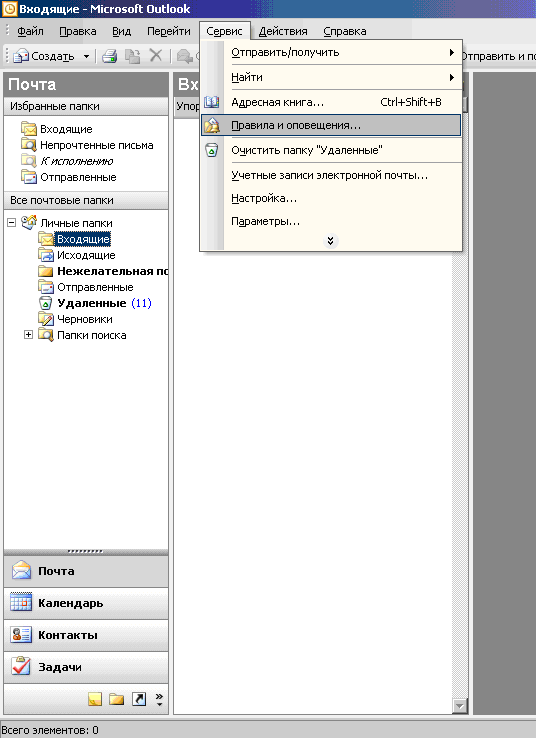 Настройка фильтрации спама в MS Outlook 2003 осуществляется следующим образом: