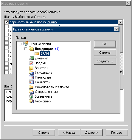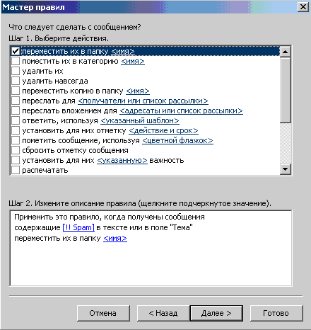 11. Нажмите «Готово» и «Ок». Теперь входящие письма, имеющие в теме заголовок “[!! Spam]” будут помещаться в папку SPAM.