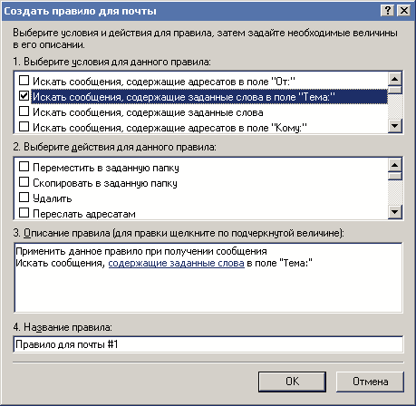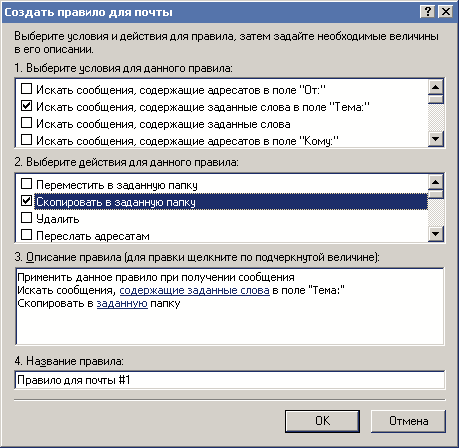 В окне "Правила для сообщений" также нажмите клавишу "OK".