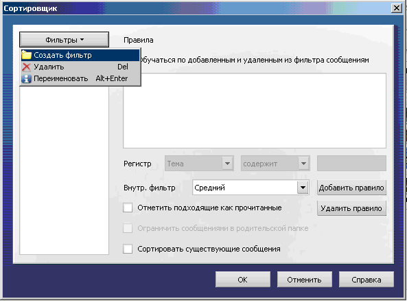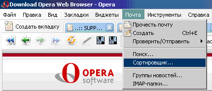1. На панели управления выберите вкладку «Почта», далее – «Сортировщик»;