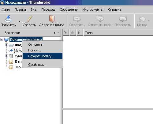 1. Нажмите правой кнопкой мышки на раздел «Локальные папки» и выберите «Создать папку»;