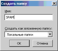 2. В строке «Имя» введите название папки для спама, например, «SPAM» и нажмите «Ок»;