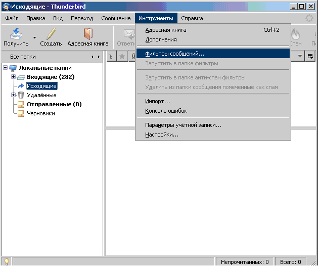 3. Затем нажмите «Инструменты» и выберите пункт меню «Фильтры сообщений»;